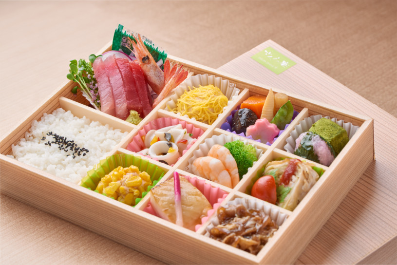 海の幸、山の幸、ふんだんに使用した、色とりどりの豪華なお弁当です。