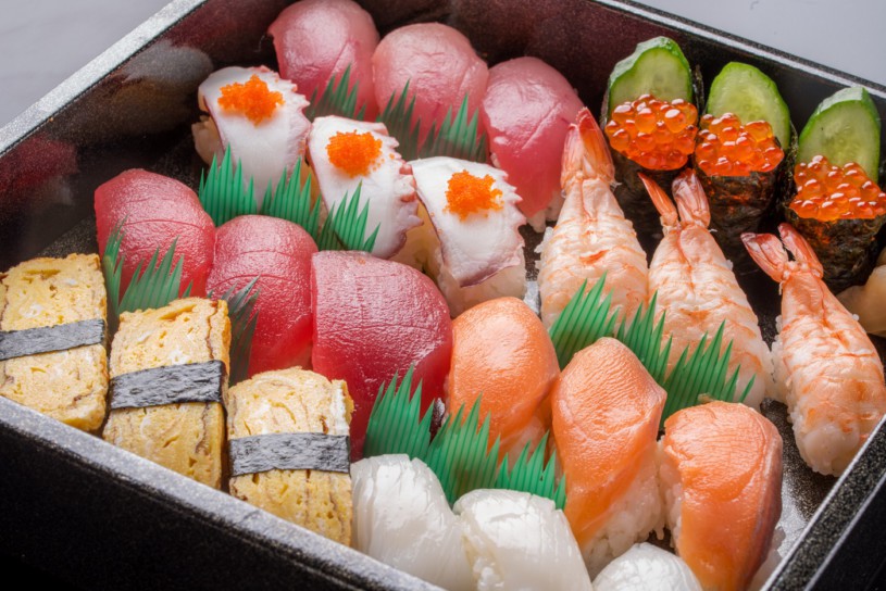 鮪赤身/トンボ鮪中トロ/ヤリイカ/いくら/タコ/海老/サーモン/玉子